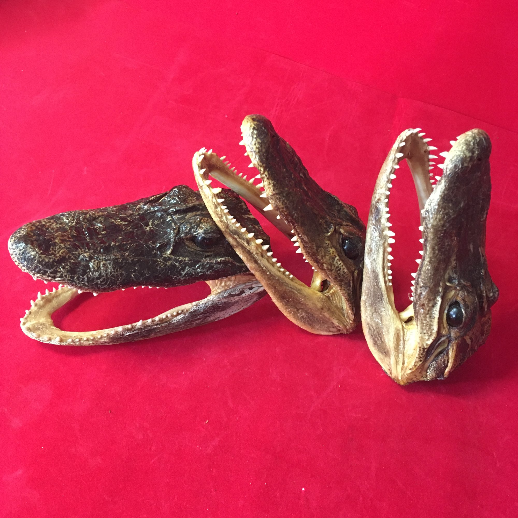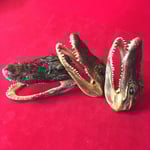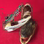 Lil guys! Real vintage taxidermy gator heads, about 3"x5" footprint, 2.5" tall. Real cute and creepy